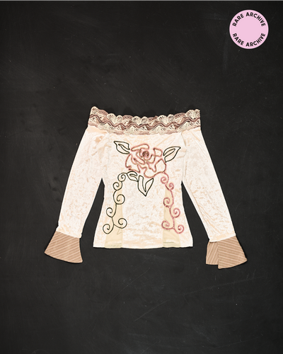 SAVE THE QUEEN! | Vintage Y2K Crushed Velvet Off-Shoulder Top