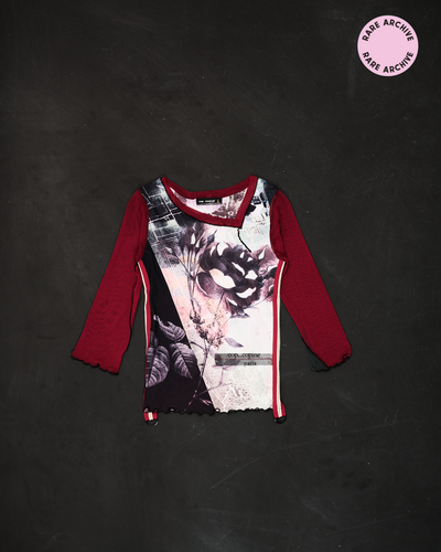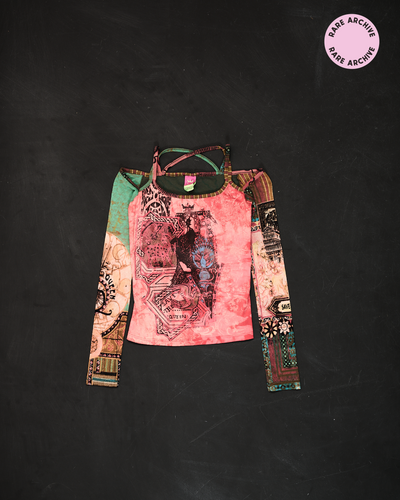 SAVE THE QUEEN! | Vintage Y2K Cold Shoulder Mesh Print Top