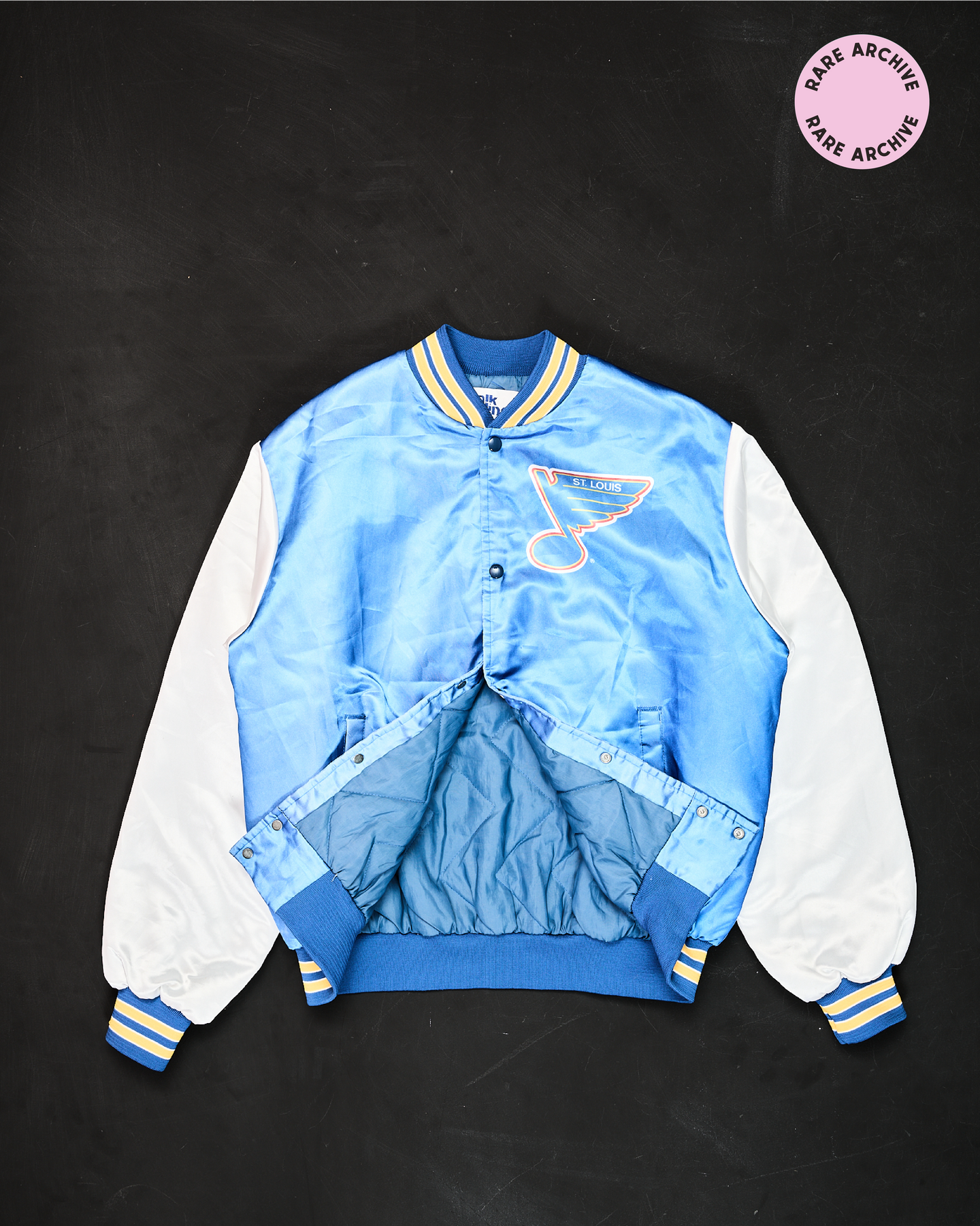 A true archive grail! This vintage Chalk Line jacket is a premium piece of 90s American sportswear, featuring the rare and iconic 'Fanimation' graphic style for the St. Louis Blues NHL team.
