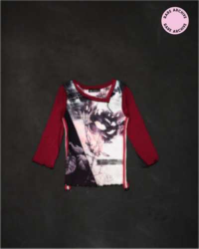 Made in France, this piece combines sheer graphic mesh with fitted ribbed sleeves, creating a dramatic, body-con silhouette that is a defining look of the late 90s and early 2000s.