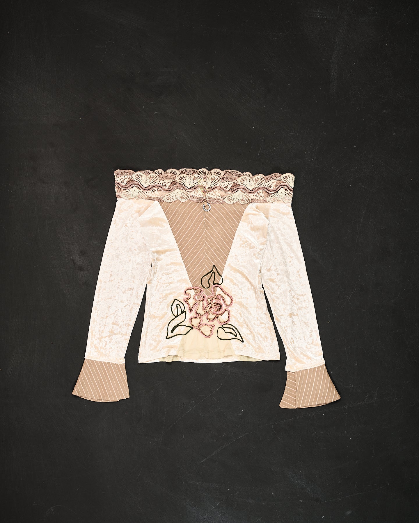 A true avant-garde masterpiece from the iconic Y2K Italian label, Save The Queen! This top is a prime example of their flamboyant, theatrical design, blending baroque and Y2K aesthetic.